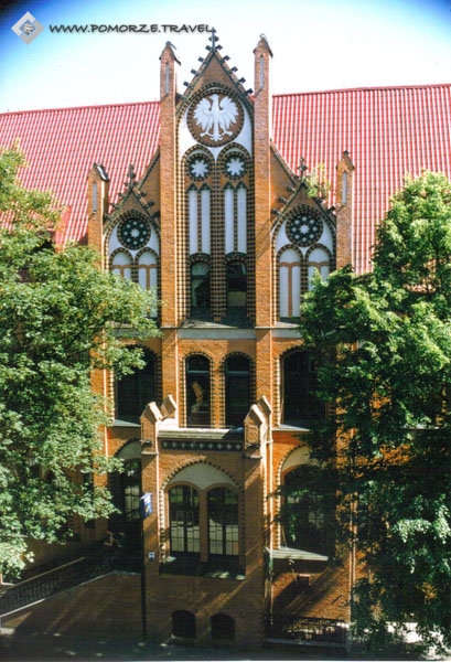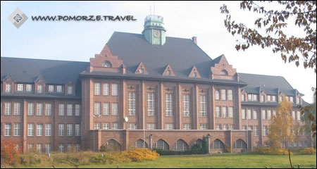 Den monumentale bygning med tre fløje, bygget mellem 1926-1929. Et sjældent tilfælde af realisering af ekspressionistisk stil i arkitekturen.