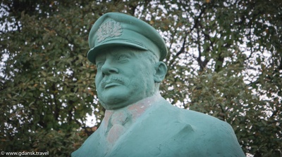 Monumentet over kaptein Tadeusz Ziółkowski, en skipsfører, laget av Stanisław Szwechowicz, ble avduket i 1990 ved Rybackie Pobrzeże (Fiskerbryggen) i...