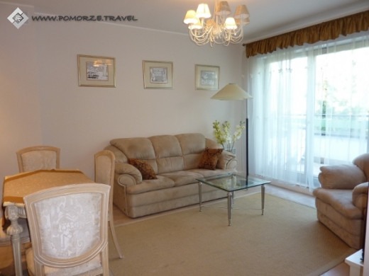 Nowy ekskluzywny apartament typu ""PENTHOUSE"" w Juracie. Klimatyzowany apartament z dużym tarasem. Obiekt ogrodzony i w pełni strzeżony. Dostęp do tarasu z każdego pokoju. Przestronny, zielony teren wokół apartamentowca. Apartament znajduje się w samym centrum Juraty, obok dużego hotelu SPA, blisko morza, przy głównym deptaku w Juracie. Apartament składa się z pokoi: Salon z aneksem kuchennym w pełni wyposażonym (lodówka, kuchnia mikrofalowa, płyta ceramiczna, garnki, sztućce, talerze itp.). Sypialna z łóżkiem małżeńskim. Sypialna z łóżkami (z możliwością złączenia). Każdy pokój posada oddzielną klimatyzację. Dodatkowo salon posada sofa z możliwością spania. Przestronna łazienka w marmurze + pralka, WC, prysznic, bidet. TV LCD + SAT (z pełnym okablowaniem do podłączenia laptopa/kamery) TV HD + filmy dla dzieci i rodziców. Apartament wyposażony w jest pościel, ręczniki, leżaki. Do dyspozycji gości - miejsce parkingowe w garażu podziemnym. Apartament znajduje się na ostatnim piętrze. Budynek posiada windę. Świetne miejsce na odpoczynek również z dziećmi, ciekawy plac zabaw dla dzieci, możliwość gry w tenisa, wypożyczenia rowerów. Polecamy usługi SPA i wyżywienie w pobliskim hotelu SPA, dostępny room service.