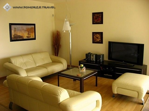 Duży, luksusowy, klimatyzowany apartament znajdujący się na pierwszym piętrze kameralnej willi, położonej bezpośrednio przy Zatoce Puckiej, blisko centrum Juraty. Apartament składa się z: pokoju dziennego, jadalni z aneksem kuchennym, sypialni, 2 tarasów i balkonu, dwóch łazienek.