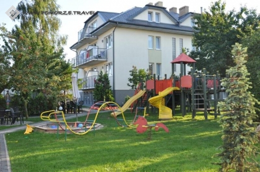Obiekt znajduje się we Władysławowie, czyli w miejscowości znanej od wielu lat jako turystycznie atrakcyjnej, ze względu na unikalne walory przyrodnicze, kulturowe i klimatyczne co sprawiają, że każdy turysta, nawet ten najmniejszy znajdzie we Władysławowie coś dla siebie. Obiekt zapewnia komfortowe warunki hotelowo-gastronomiczne. Składa się z budynków znajdujących się koło siebie, mających wspólny teren rekreacyjno-sportowy. W budynkach oddawane są do dyspozycji gości pokoje. Każdy z nich wyposażony jest w łazienkę, TV, radio, sprzęt na plażę, większość z balkonem. Ponadto w domach, udostępniona jest do dyspozycji gości **w pełni wyposażona kuchnia**. Obiekt oferuje także **pyszne, domowe posiłki** - śniadania w formie stołu szwedzkiego i obiadokolacja, serwowane w przytulnych miejscach z miłą obsługą.
